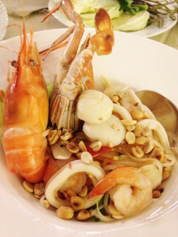 ส้มตำทะเล ส้มตำรสชาติที่เราชอบเลยค่ะ เปรี้ยวๆหวานๆ เราไม่ค่อยเน้นเผ็ด ส่วนอาหารทะเลในจานนี้ เรียกได้ว่าประทับใจสุดๆ ตัวใหญ่ ให้เยอะด้วย ชอบที่สุดคือหอยเชลล์นั่น มันล้ำมากค่ะ