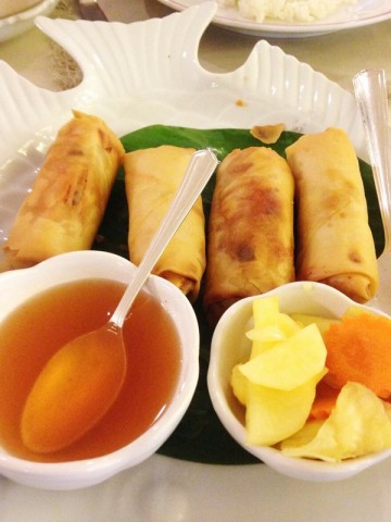 เปาะเปี๊ยะทอด จานนี้เป็นอาหารทานเล่น เรียกน้ำย่อยได้ดีทีเดียวค่ะ รสชาติก็อร่อยดี แต่ไม่ได้โดดเด่นอะไรมาก น้ำจิ้มก็หวานๆเปรี้ยวๆ คล้ายๆ จิ้มบ๊วย เข้ากันกับของทอดมากค่ะ อ้อเค้ามีพวกผักดองเสิร์ฟมาด้วยค่ะ กินแก้เลี่ยนดี