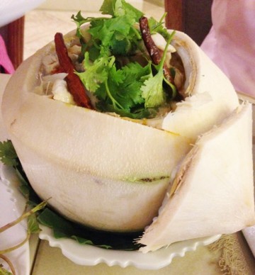 ต้มข่าไก่ ถ้วยนี้เสิร์ฟมาเป็นลูกมะพร้าวน่ากินมากค่ะ เครื่องล้นถ้วยมากตามที่เห็น น้ำแกงน้อยไปเลยเมื่อเจอเครื่องเยอะขนาดนี้ รสชาติให้ผ่านค่ะ เข้มข้น ได้รสกะทิดีมาก