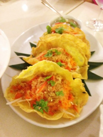 ขนมเบื้องญวณ เป็นอีกจานที่สั่งมาทานเล่นค่ะ เคยทานแบบชิ้นใหญ่ๆ อันนี้เค้าเสิร์ฟมาแบบชิ้นเล็กๆ แต่ก็อร่อยใช้ได้ค่ะ เราว่าหาทานอร่อยยากนะ แป้งกรอบ ไส้เยอะ รสชาติดีเลยล่ะ