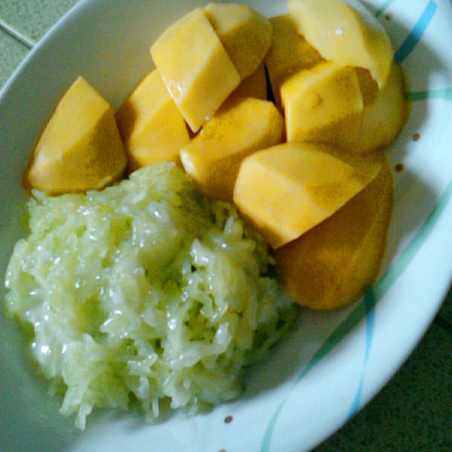 ข้าวเหนี่ยวร้านนี้เป็นข้าวเหนียวมูนน้ำกะทิใบเตย ตัวข้าวเหนียวจะเป็นสีเขียว มีข้าวเหนียว หนึบ หอม หวาน ตัดกับน้ำกะทิออกเค็มนิดๆ แค่นี้ก็อร่อยแล้วค่ะ โดยส่วนตัวเราชอบทานแต่ข้าวเหนียวเปล่าๆ ส่วนมะม่วงให้คนอื่นทาน 555 มะม่วงมีทั้งอกร่อง และน้ำดอกไม้นะคะ เลือกได้ตามแต่ชอบค่ะ