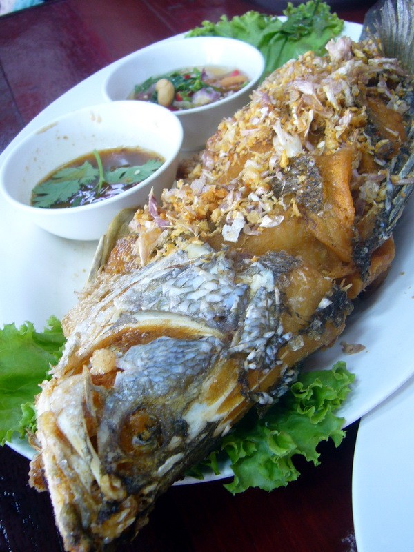 ปลากระพงทอดที่นี่อร่อยทุกเมนู (วันต่อมาก็ไปกินกันอีกอะค่ะ ^_^)