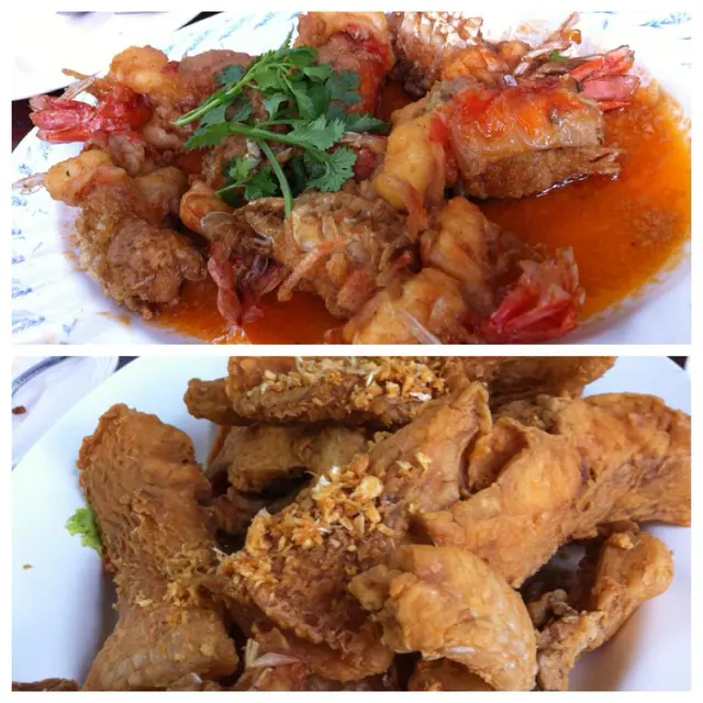 ร้าน เรือนแพ ครัวสุพรรณ สุพรรณบุรี เป็นหนึ่งในร้านอาหารที่มีชื่อเสียงของจังหวัดสุพรรณบุรีครับ แต่ไม่ได้ตั้งอยู่บนถนนเส้นหลักที่ผ่านสุพรรณบุรีนะครับ ต้องขับรถแยกจากถนนหลักที่ผ่านจังหวัดสุพรรณบุรี (ทางหลวงเส้น 340) เข้าไปใช้ถนนเส้นเลียบแม่น้ำท่าจีน (เส้นลำปลาซิว) ขับต่อไปไม่ไกลครับ จะเห็นร้าน เรือนแพ ครัวสุพรรณ สุพรรณบุรี อยู่ทางซ้ายมือครับร้าน เรือนแพ ครัวสุพรรณ สุพรรณบุรี เป็นร้านอาหารขนาดใหญ่ (มาก) เป็นทั้งร้านอาหารและรีสอร์ทที่พัก บรรยากาศดีมาก ติดแม่น้ำท่าจีน ในส่วนของร้านอาหารก็มีที่นั่งในในอาคารที่อยู่บนฝั่ง น่าจะมีห้องจัดเลี้ยงส่วนตัวให้บริการด้วยนะครับ เพราะสถานที่โอ่โถงมาก หรือว่าถ้าอยากสัมผัสกับธรรมชาติก็ต้องไปนั่งในแพที่ลอยอยู่ในแม่น้ำท่าจีนที่ท่าน้ำครับ แม่น้ำท่าจีนตอนที่ผ่านหน้าร้าน เรือนแพ ครัวสุพรรณ สุพรรณบุรี ไม่ค่อยมีคน จะเห็นธรรมชาติเขียวๆ ไกลสุดลูกตา น้ำใสมากๆ มีฝูงปลาตะเพียนหางแดงมาว่ายอยู่ที่แถวๆแพเยอะเชียวครับสำหรับอาหารที่ให้บริการก็จะเป็นอาหารไทย – จีน ทั่วๆไปนะครับ แต่ทางร้านจะเน้นอาหารพื้นถิ่น และอาหารทีทำจากปลาแม่น้ำส้มตำไข่เค็มจานนี้สอบตก (ในความชอบของเจ้าของบล็อก) ตั้งแต่ตอนยกมาเสิร์ฟ เพราะที่เอามาเสิร์ฟคือ “ตำไทยแนมกับไข่เค็ม” ในความชอบเจ้าของบล็อก “ตำไข่เค็ม” คือส้มตำที่ใส่ไข่เค็มลงไปตำด้วยกันจนไข่ละลายลงไปในน้ำส้มตำบางส่วน ทำให้น้ำส้มตำมีรสชาติมันๆ เค็มๆ รวมกับรสชาติเผ็ด เปรี้ยว หวาน ของส้มตำจะได้รสที่นัวๆเป็นเอกลักษณ์ของส้มตำไข่เค็มครับเฉพาะรสชาติของส้มตำจานนี้ก็อร่อยดีนะครับ เป็นรสชาติส้มตำแบบกรุงเทพฯๆ ที่คุ้นเคยกันดีครับปลาม้าเจี๋ยนขิง ราคา 190 บาทราคาจานนี้สูงนิดนึงนะครับ เพราะจานนี้เป็นปลาหายากที่มีชื่อเสียงของจังหวัดสุพรรณครับปลาม้าชิ้นหนาๆ ทอดมาแบบกรอบๆ หนังมีความหนึบๆนิดๆ เนื้อสัมผัสของปลาม้าอร่อยมากครับ เนื้อแน่นๆ มีความหนึบๆ แต่ ..... เค้าผัดเครื่องแล้วเอามาราดหน้าเฉยๆครับ เนื้อปลาม้าทอดเลยแทบไม่ได้รสชาติของเครื่องเจี๋ยนขิงที่หอมขิง ต้นหอม มีรสชาติเค็มๆ หวานนิดๆ เผ็ดขิงกับพริกชีฟ้านิดหน่อย .... น่าเสียดายครับ เมี่ยงปลาช่อน ราคา 250 – 300 บาทจานนี้รสดีมากๆครับ น้ำเมี่ยงเป็นเครื่องและสมุนไพรหลายๆอย่าง ตะไคร้ พริก หอมแดง ขิง ถั่วลิสงทอด กุ้งแห้งทอด คลุกเคล้ากับน้ำยำรสเค็มๆ หวานๆ เวลารับประทานจะต้องตักเนื้อปลาช่อนทอดกรอบ น้ำเมี่ยง ใส่ในใบคะน้ากรอบๆ ทานพร้อมๆกัน อร่อยมากเลยครับแกงเลียงปลากรอบ ราคา 180 บาทแกงเลียงรสเ