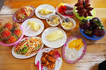 บุฟเฟ่ต์ผลไม้จากสวนละไม มีทั้งทุเรียน เงาะ มังคุด สละ ลองกอง แก้วมังกร แตงโม สับปะรด และอื่นๆอีกมากมาย พร้อมทั้งข้าวเหนียว ส้มตำ ไก่ทอด ข้าวเหนียวมะม่วง ข้าวเหนียวทุเรียน แถมได้เที่ยวชมสวนด้วยค่ะ