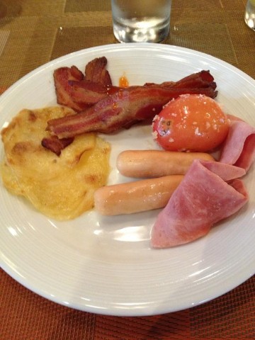 คราวนี้เราเปลี่ยนบรรยากาศมาพักกันที่โรงแรมเซ็นทาราขอนแก่นกันดูบ้าง เพิ่งจะเปิดมาประมาณปลายปีที่แล้วไหนๆ เราก็มานอนที่เซ็นทาราแล้ว ก็ต้องมารีวิวอาหารกันซะหน่อยมื้อเช้าของที่นี่จะเป็นห้องอาหาร The Globe บรรยากาศการตกแต่งภายในห้องอาหารออกจะเป็นโทนแดง ส้มอันนี้เป็นมุมขนมปัง มีให้เลือกหลากหลายแบบ พร้อมนม เนยและแยมหลากรสอันนี้เป็นมะเขือเทศย่าง กับมันบด อันนี้เป็นแฮม กับเบคอนและแล้วทั้งหมดที่เห็นมาก็มาอยู่ในจานนี้เป็นทีีเรียบร้อย รสชาติอร่อยดีทีเดียว แต่ขาดอะไรไปอย่างมาแล้วเป็นไข่กระทะนั้นเอง โรยหน้าด้วยหมูหยองมาเต็มๆ เลย อร่อยทีเดียวเชียวใครผ่านมาขอนแก่น ลองมาแวะพักที่โรงแรมเซ็นทารากันได้นะ…查看更多