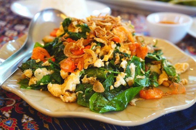 มีโอกาสได้ไปเที่ยวที่ภูเก็ต มาเมื่อเดือนก่อน ตั้งใจว่าต้องไปหาร้านอาหารพื้นเมืองท้องถิ่นแบบสไตล์ภูเก็ตแท้ๆ ชิมสักมื้อนึง มีเพื่อนคนท้องที่แนะนำร้านกอบัว ภูเก็ต มาให้ว่าควรลองไปชิมร้านนี้ เลยไปจัดมื้อเที่ยงของทริปวันแรกของแก็งค์เราเลย[พิกัดร้านกอบัว ภูเก็ต Korbua Phuket]ร้านอยู่ในย่านตัวเมืองภูเก็ตนะครับ ถ้าจากสนามบิน วิ่งเข้าทางตัวเมืองภูเก็ต พอผ่านอนุเสาวรีย์ท้าวเทพกระษัตรี ก็วิ่งตรงมาเรื่อยๆจนมาถึงแยก ม.ราชภัฎภูเก็ต เลี้ยวเข้าซอยกู้กู (ถนนรัษฎานุสรณ์) วิ่งเข้ามาอีกเพียง 30-40 เมตรก็จะเจอร้านกอบัว อยู่ด้านขวามือเลย หาไม่ยาก สังเกตุป้ายร้านสีเขียวๆได้คับการตกแต่งของร้านนี้ ถ้ามองจากข้างนอกจะเห็นเป็นอาคารสีขาว สไตล์โคโรเนียล แบบชิโนโปรตุกีส ร้านมีทั้งโซน Ourdoor นั่งรับลมด้านนอก และโซน Indoor ในห้องแอร์เย็นๆเข้าไปด้านในร้าน ออกธีมสีขาวครีม ดูคลาสสิคมากๆครับ ตกแต่งสวยงามตามสไตล์โคโรเนียล ผสมผสานความเป็นยุโรป จีนกับความเป็นท้องถิ่นแบบภูเก็ตดั้งเดิม สัมผัสได้ถึงความสวยงามที่ออกคลาสสิค มองไปมุมไหนก็สวยงาม แถมด้านหลังร้านเป็นต้นไม้เขียวๆอยู่มากมาย มองทะลุช่องหน้าต่างออกไปก็ได้สีเขียวจากใบไม้ เพิ่มความสดชื่นขึ้นไปอีกวันที่เข้าไปทาน โชคดีได้เจอเจ้าของร้านคุณก้อง คุณจอย พี่ทั้ง2ใจดีมากๆ ได้พูดคุยกันหลายอย่าง พร้อมแนะนำเมนูฮิตๆของร้านให้เรารู้จักหลายอย่างเลย คนต่างถิ่นแบบผมก็ไม่รอช้า เมนูไหนขายดี ก็สั่งกันเลยสิคับ รอไรสังเกตุที่ผนังร้านเห็นมีติดกรอบรูป เป็นคอลัมภ์แนะนำร้านภูเก็ตทาวน์ ทองหล่อ อยู่หลายกรอบภายในร้าน พอได้คุยกับทางเจ้าของร้านถึงบางอ้อว่า ที่แท้แล้วร้าน Phuket Town ตรงทองหล่อซอย6 นี้เป็นร้านของน้องสาวพี่ก้อง ไปเปิดนั้นเอง เพราะเคยได้ยินหลายคนพูดถึงกันว่าถ้าอยากกินอาหารใต้สไตล์ภูเก็ตแท้ๆ ถ้าอยู่กรุงเทพต้องไปร้านภูเก็ตทาวน์ เพราะขึ้นชื่อลือชา เรื่องความอร่อยมากพอมารู้ว่าร้านกอบัว เจ้าของร้านเป็นพี่ชายของร้านภูเก็ตทาวน์ ทองหล่อ ผมนี้ยิ้มเลย งานนี้ถ้ากลับไปกรุงเทพ นึกอยากกินอีก ไม่ต้องไปไกลแล้ว มุ่งตรงไปร้านนี้ได้เลย สูตรอาหารเดียวกันเป๊ะเมนูเป็นแผ่นใหญ่ๆ พร้อมชื่อไทย-อังกฤษพร้อม แบบหน้าหลังมาเริ่มรีวิวกันเลย-ผักเหมียงผัดกุ้งเสียบ 120บาทใบเหมียงหรือใบเหลียง พื้นท้องถิ่นพบได้เยอะในแถบภาคใต้ นำมาผัดกับไข่ กุ้งเสียบ โรยหอมเจียว โป๊ะอีกนิด ใบเหมียงรสชาติจะออกมันๆ หวานนิดๆ ผัดเข้ากันกับไข่ กลิ่นหอมและอร่อยมากๆ เป็นเมนูที่ Reccommend เลยว่าถ้ามาร้านนี้ต้องสั่ง อร่อยโดนใจจ