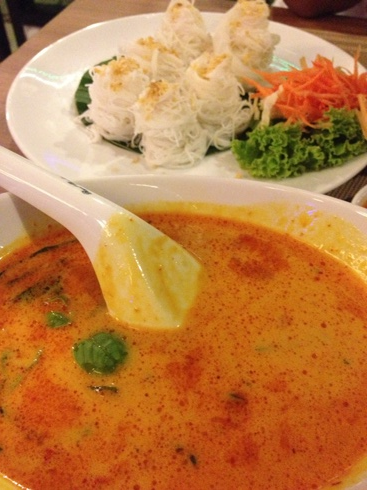 Pan Bistro เปิดมาซักพักแล้ว เห็นร้านที่มาตั้งแต่ตอนสร้าง เนื่องจากมาทำงานต้องผ่านทางนี้ ตอนแวะทานครั้งแรก ชอบจังร้านหลังคาสูงแบบนี้ กาแฟก็อร่อย อาหารก็อร่อย ตอนนั้นกินแกงไก่ใส่ลำใย ช่วงเข้ากันวันนี้มีโอกาส แวะมาอีกครั้ง ทางร้านมีเมนูให้เลือกเยอะกว่าเดิมทอดมันกุ้ง อันนี้ตักไปแล้วชิ้นนึง ก็ทั่วไปค่ะ อร่อยไม่มีตรงไหนให้ติสุกี้ทะเลแห้ง จานนี้วุ้นเส้นน้อยไปหน่อย แล้วก็เยิ้มไปหน่อย ก็อร่อยค่ะ ได้ทานผักเยอะดี เราเองก็ชอบหอยแมลงภู่อยู่แล้วด้วยบะหมี่แกงปู จานนี้ออกเค็มไปหน่อย สรุปคือ ยังคงติดใจแกงไก่ใส่ลำใยอยู่ กาแฟที่นี่อร่อยค่ะ ชงสด แก้วละ 60 บาท อร่อยกว่าร้านละแวกนี้แก้วละ 100 อีกค่ะ…查看更多
