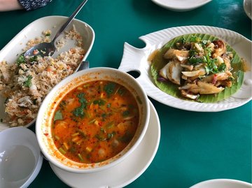 地方比較難找 本地客人比較多 海鮮選擇豐富 味道也不錯 價格平易 值得一試 Seabass和蟹肉炒飯比期望的好 我們不怎麼吃辣 他們也可以弄個不辣的冬陰公湯給我們👍 英文水準可以 溝通沒有問題