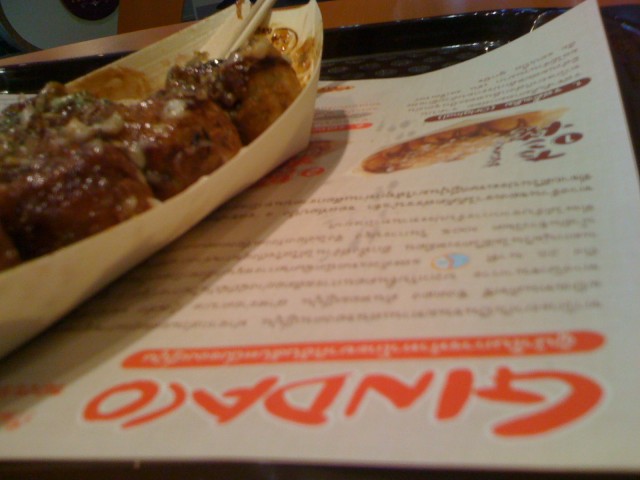สำหรับทาโกยากิ ที่อร่อยที่สุดสำหรับผม จะเป็นร้านไหนไปไม่ได้เลย นอกจากร้าน กินดาโกะ Gindacoทาโกะยากิ ที่นี่ เป็นแบบข้างนอกกรอบ ข้างในนุ่ม รสชาติเข้มข้น โรยมาด้วยปลาโอแห้งและสาหร่ายป่น ทานพร้อมกับชาเขียวแท้เย็นๆ เข้ากันดีทีเดียวร้านนี้จะอยู่ที่ชั้นใต้ดินของ ห้าง เอสพลานาด สาขา รัชดาฯ มีที่นั่งให้ทานพอสมควร พนักงานพูดจาดี สำหรับคนที่เดินไปเดินมา พนักงานจะมีการทักทายด้วยภาษาญี่ปุ่น ที่นี่ทำทาโกยากิกันสดๆ ร้อนๆ กลิ่นฟุ้งไปทั่วชั้นใต้ดินของเอสพลานาด อีกทั้งมีคนต่อคิวยาวเหยียด เพียงแค่ หนึุ่งทุ่ม ของก็ใกล้จะหมดแล้ว ดังนั้นต้องรีบไปซื้อกันแต่วันนะครับสำหรับเซ็ตพร้อมชาเขียว กับทาโกะ 10 ลูก อยู่ที่ประมาณ 150 บาท…查看更多