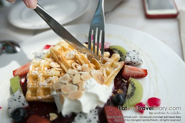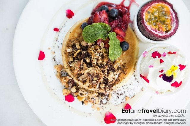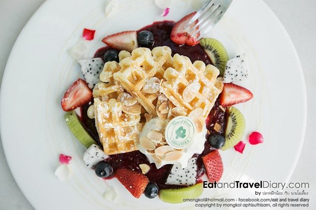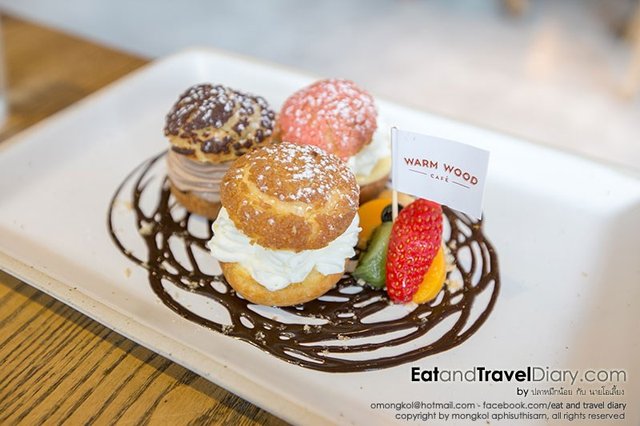 Warm Wood Café คาเฟ่น่ารัก น่าอบอุ่นที่แทรกตัวอยู่ปากซอยทองหล่อ 10 เพียงแค่ก้าวเข้าไปในร้านก็สัมผัสได้ถึงความอบอุ่น ตรงกับคอนเซ็ปท์ของร้าน “From our warm heart and crafty hands” ด้วยการตกแต่งในสไตล์ฝรั่งเศส แต่ก็มีกลิ่นอายความเป็นคาเฟ่ญี่ปุ่นอยู่เช่นกันบรรยากาศภายในร้านตกแต่งด้วยโทนสีที่อบอุ่นสบายตา ที่เน้นสีเอิร์ธโทนของเฟอร์นิเจอร์ไม้ภายในร้าน นอกจากนี้ภายในร้านก็เต็มไปด้วยของตกแต่งร้านน่ารักๆ ที่สามารถสังเกตเห็นได้ทั่วร้าน ชวนให้หยิบมือถือมาเซลฟี่กันเพลินเลยละครับสำหรับเมนูของที่นี่ก็มีให้เลือกทั้งอาหาร ของหวานและเครื่องดื่ม โดยอาหารจะออกไปทางแนว all day brunch ซึ่งก็มีให้เลือกหลากหลายเมนู ขอเริ่มที่พาสต้าก่อนกับ Ebiko (300 บาท) สปาเก็ตตี้ครีมซอสที่มาพร้อมกุ้งลายเสือตัวโต และไข่กุ้ง ที่รสชาติกำลังดี ไม่เลี่ยนจนเกินไป ถือว่าเป็นเมนูแนะนำของร้านเลยก็ว่าได้ครับมาต่อกันที่ Grape Chincken (320 บาท) เมนูไก่ราดซอสองุ่น ไก่เนื้อนุ่มๆ ที่เติมรสชาติหอมหวานกลมกล่อมด้วยซอสองุ่น ที่มาพร้อมกับองุ่นสด ถือว่าอร่อยลงตัวมากๆ ครับปิดท้ายของคาวที่เมนู Duo Beef Burger (240 บาท) เบอร์เกอร์เนื้อขนาดน่ารัก แต่รสชาติถือว่าอร่อยโดนใจไม่เบา ที่เสิร์ฟพร้อมสลัดผักและมันฝรั่งทอดจากนั้นก็มาถึงเมนูของหวานกันบ้าง บอกเลยว่าของหวานที่นี่หน้าตาน่ารักไม่แพ้บรรยากาศร้านเลยครับ ขอเริ่มที่เมนูเด่นของร้านนั่นก็คือ Carnelian Choux (260 บาท) แป้งชูว์ที่มาพร้อมกับครีม Vanilla, Milk chocolate และ Strawberry Yuzu เสิร์มมาในขนาดน่ารัก น่าทาน ตัวครีมหอม รสชาติดีไม่หวานเกินไปนัก เข้ากับแป้งชูว์ที่นุ่มกำลังดี อร่อยถูกใจสุดๆและเติมความสนุกสนานอีกนิดด้วยเมนู Coffee Garden (220 บาท) ทีรามิสุเนื้อเนียนนุ่ม ที่มาในรูปของกระถางต้นไม้น่ารักๆ และช้อนในรูปของพลั่วขุดดิน ตัวทีรามิสุเนียนนุ่ม หวานกำลังดี อร่อยเพลินๆ เลยละครับส่วนเครื่องดื่มก็มีให้เลือกเติมความสดชื่นกันหลากหลายไม่ว่าจะเป็น Mango Passion (160 บาท) สมูทตี้มะม่วงที่เติมความสดชื่นด้วยเสาวรส ทำให้ได้รสชาติหวานอมเปรี้ยว อร่อยชื่นใจหรือจะเป็น Very Berry (180 บาท) ที่เข้มข้นด้วย Mixed berries ชนิดต่างๆ ที่นำมาปั่นพร้อมกับน้ำแอปเปิ้ลและไอศกรีมโยเกิร์ต นอกจากจะได้ความสดชื่นของเบอร์รี่แบบเต็มๆ แล้วยังได้ความรู้สึกเปรี้ยวอมหวานเติมความสดชื่นให้กับร่างกายได้ดีทีเดียวครับส่วนคอกาแฟก็สามารถเลือกสั่งกาแฟแก้วโปรดอย่างผมที่เลือกเป็น Coffee Latte (100 บาท) กาแฟลาเต้ร้อนที่หอมกรุ่น มาพร้อมกับลายลาเต้อาร์ทน่ารักๆ รสชาติเข้มข้น สดชื่นไม่แพ้กันเลยครับสำหรับ Warm Wood Café นั้น ส่วนตัวแล้วผมชอบทั้งบรรยากาศที่ดูน่าร